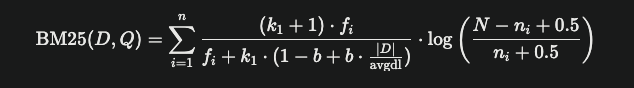 - k1 和 b是调整参数,通常设置为 k1=1.2和 b=0.75 。