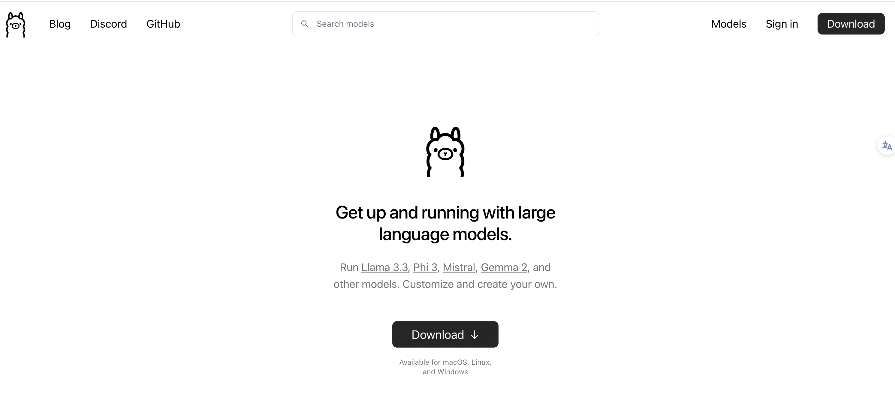 - Ollama主页:https://ollama.com/ ,支持macOS, Linux 和 Windows 系统,如果是macOS、Linux系统,直接安装使用即可;如果是Windows,需要按照以下教程进行安装使用: