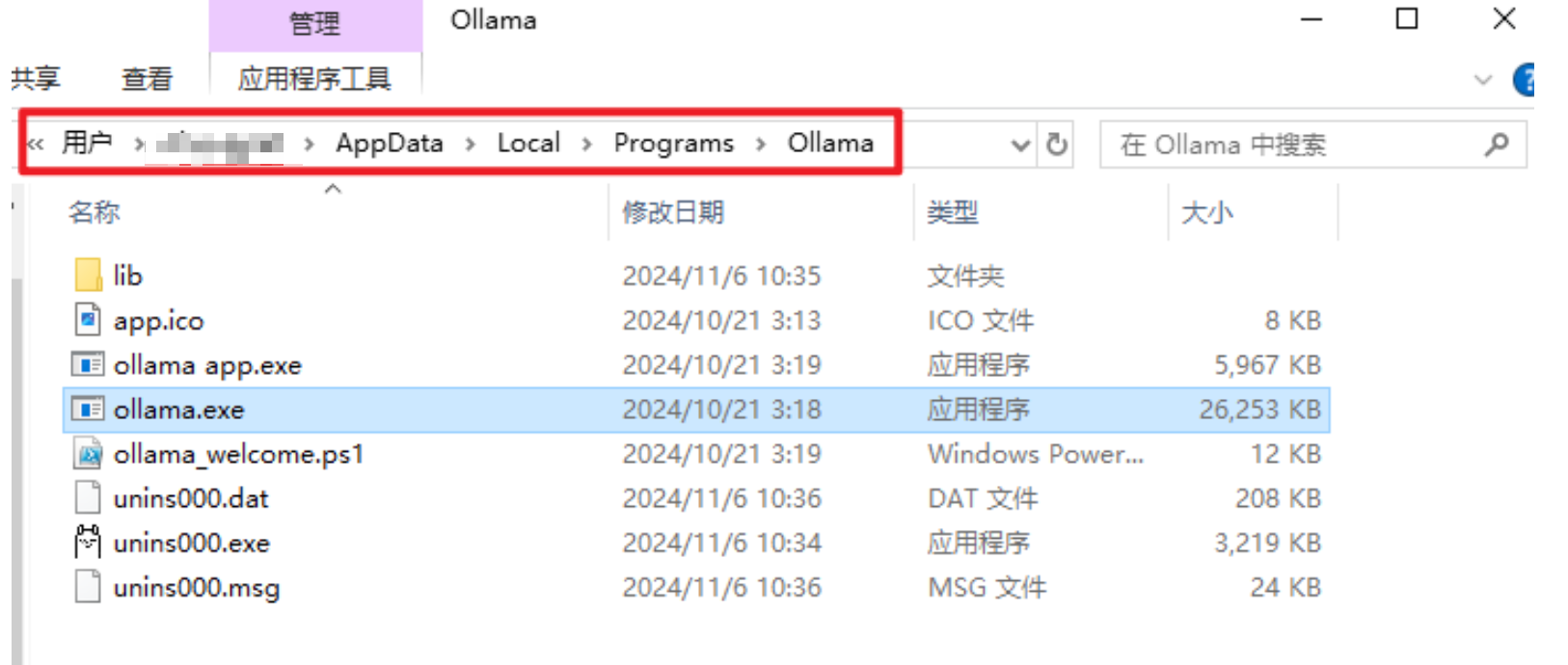C:\Users\%username%\AppData\Local\Programs\Ollama,并不会让用户自定义选择安装路径。
